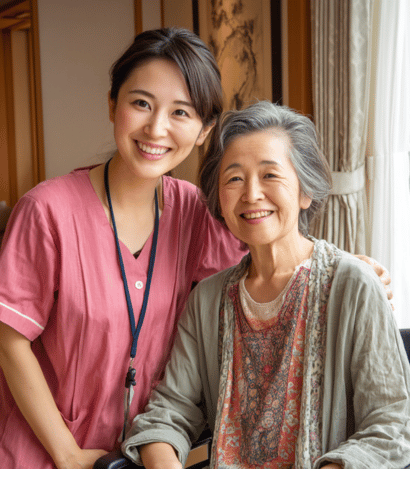 Certified nurses, caregivers, and medical support staff addressing Japan's growing healthcare and elderly care needs.